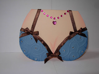 Splitcoaststampers. J'ai découpé le tout avec ma Cricut expression et j'ai embosser le soutien gorge avec ma Cuttlebug. J'y ai ensuite collé les rubans et les petits diamants autocollants pour lui donner un peu plus de vie!